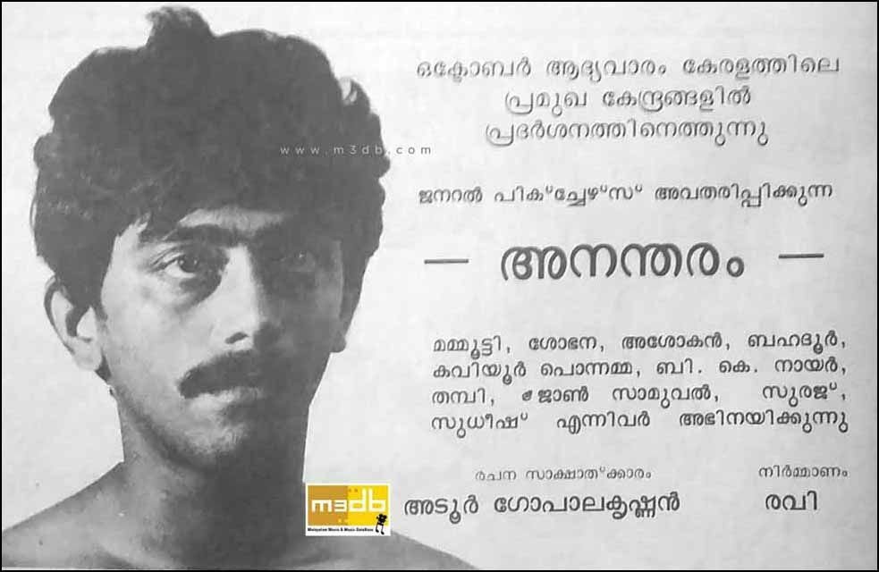 82-ൽ എം.ടി.വാസുദേവൻ നായർ ‘മഞ്ഞ്’ സംവിധാനം ചെയ്തു. മഞ്ഞ് ശരത് സന്ധ്യ എന്ന പേരിൽ ഹിന്ദിയിലും നിർമ്മിച്ചിരുന്നു. പക്ഷെ പുറത്തിറങ്ങിയില്ല. തുടർന്ന് അടൂർ കാലമായി. 1981 എലിപ്പത്തായം 84-ൽ ‘മുഖാമുഖം’, 87-ൽ ‘അനന്തരം’, 94-ൽ ‘വിധേയൻ’ എന്നീ ചിത്രങ്ങൾ അടൂർ ഗോപാലകൃഷ്ണൻ സാക്ഷാത്കരിച്ചു.
