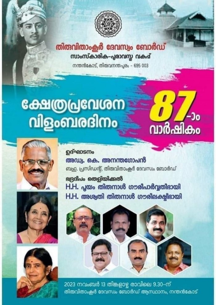 ക്ഷേത്രപ്രവേശന വിളംബരവുമായി ബന്ധപ്പെട്ട് തയ്യാറാക്കിയ നോട്ടീസ് രാജഭക്തിയുടെ കാലഘട്ടത്തെ പോലും നാണിപ്പിക്കുന്ന വിധമായിരുന്നു. രാജകുടുംബാംഗങ്ങളെ രാജ്ഞിയെന്നടക്കം ഇതില് വിശേഷിപ്പിച്ചിരുന്നു. ജാതി വ്യവസ്ഥയുടെ അടിസ്ഥാന തത്വങ്ങളുമായി ബന്ധപ്പെട്ട് വിവാദത്തിലായ സനാതന ധർമ്മ വാദത്തെ ഇത് ന്യായീകരിക്കുകയും ഒപ്പം ഉദാത്തവൽക്കരിക്കയും ചെയ്തിരുന്നു. നോട്ടീസ് പിന്നീട് ദേവസ്വം ബോര്ഡ് ഇടപെട്ട് പിന്വലിക്കേണ്ടി വന്നു.