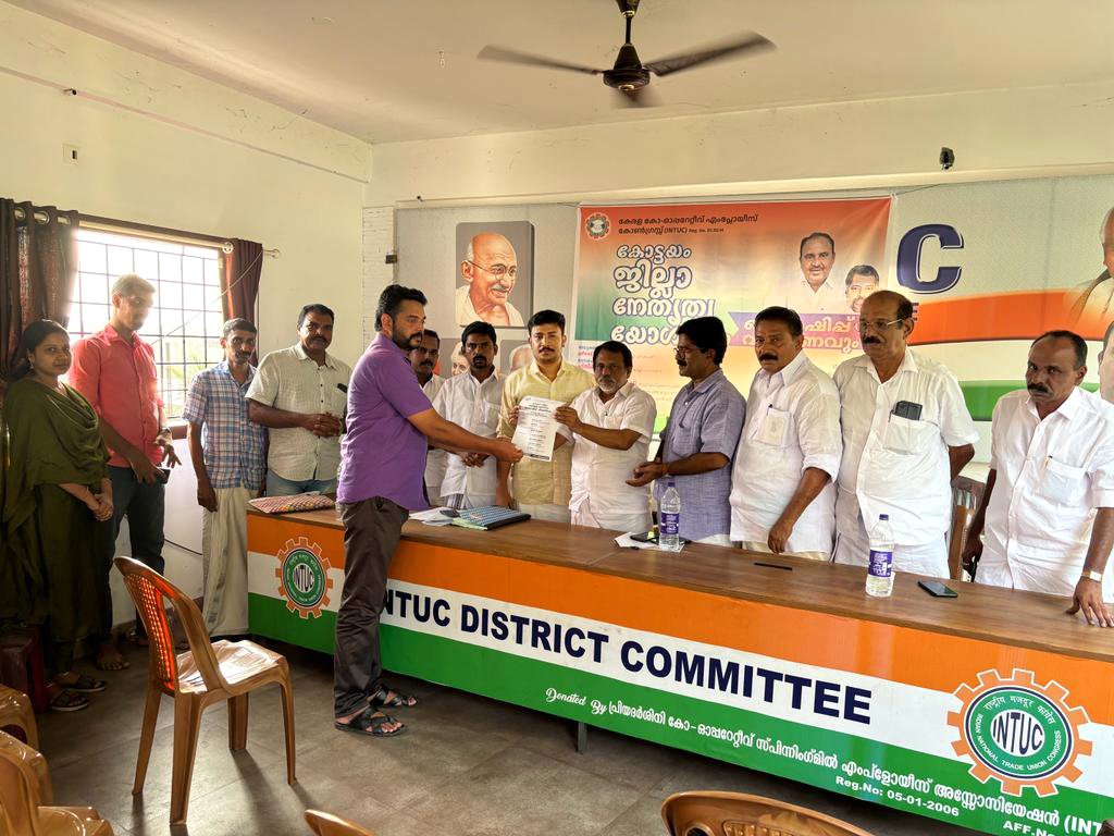 2023 നവംബർ 11-ാം തീയതി ഉച്ചയ്ക്ക് രണ്ടുമണിക്ക് INTUC കോട്ടയം ജില്ലാക്കമ്മിറ്റി ഓഫീസിൽ വെച്ച് KCEC-INTUC ജില്ലാ പ്രസിഡന്റ് ശ്രീനാഥ് രഘുവിൻ്റെ അധ്യക്ഷതയില് ചേർന്ന യോഗത്തിൽ മെമ്പര്ഷിപ്പ് വിതരണം INTUC ജില്ലാ പ്രസിഡൻ്റ് ശ്രീ ഫിലിപ്പ് ജോസഫ് നിര്വഹിച്ചു.